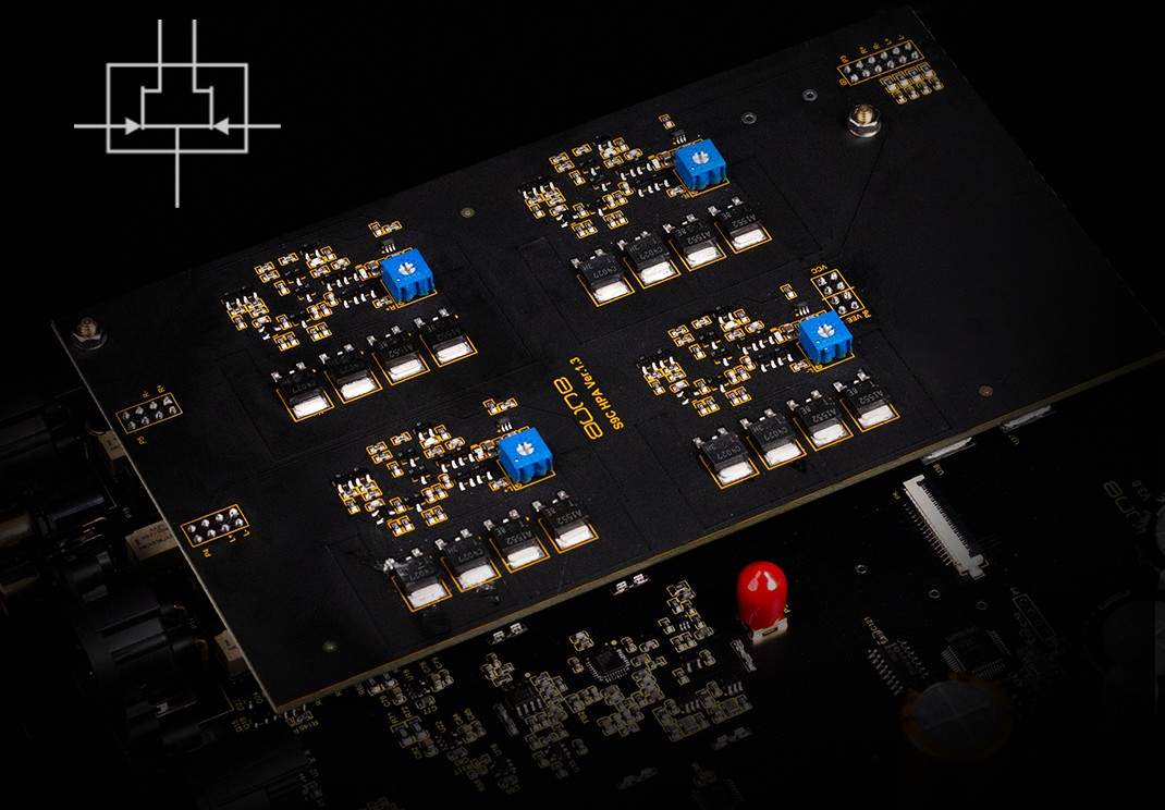 The balanced amplifier stage is a discrete circuit with the integration of 16 dual JFET transistors (2 per output channel) enabling it to deliver up to 5W of power. The amplifier features 3 headphone outputs, 4.4mm and 4-pin XLR balanced plus a single-ended 6.35mm jack.