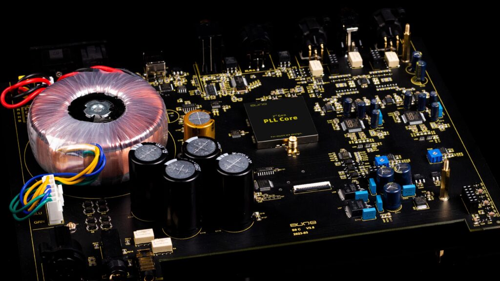 The use of ultra-low jitter PLL (phase-locked loop) technology enables the S9c Pro to isolate the clock source signal from the analog input signal, and transmit it simultaneously to the USB XMOS interface and the DAC section. It’s this sharing of the clock signal source that makes high-fidelity rendering possible. But the special feature of the S9c Pro is that the clock synchronization system also converts coaxial, AES and optical signals into I2S signals, greatly enhancing the quality of the final audio rendering and drastically limiting interference. The S9c Pro also supports a 10 Mhz BNC input for an external clock like the Aune S1c, SC1 and XC1.