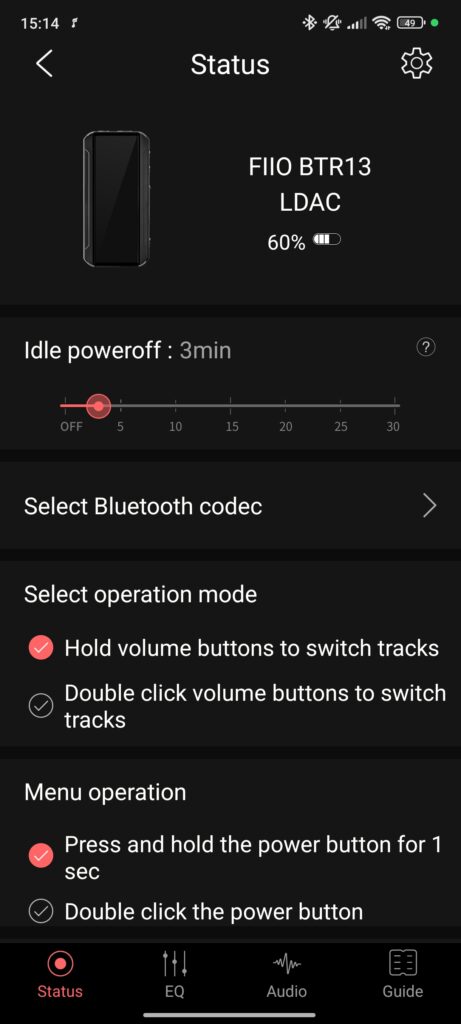 The BTR13 is designed to work with the FiiO control application, which is essential for accessing certain configuration options that are not available through the device’s internal menu. This application also facilitates adjustments to the user configurable PEQ settings that have global effect. Users can share their PEQ profiles with others, while the app supports straightforward over-the-air firmware updates. However, it is worth noting that the FiiO control application currently does not permit changes to the low pass filter, a feature that may be added in a future firmware release.