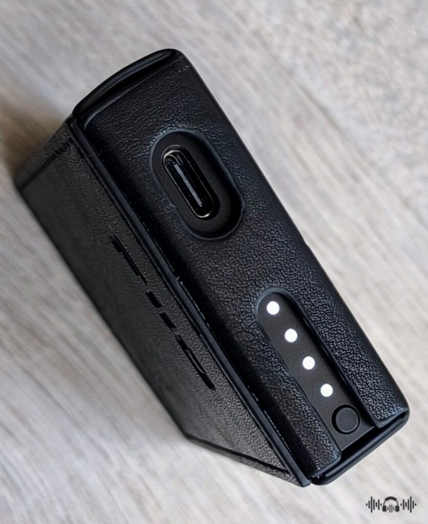 The ESTICK is a compact sized power bank that measures 64×23.5x13mm so it matches the FiiO KA17 in depth and height without adding much width or weight as it weighs about 31g. After attaching it to the side of the KA17 you end having a combined device that roughly measures 51x64x13mm and weighs a total of 65g or 78g with the leather case.