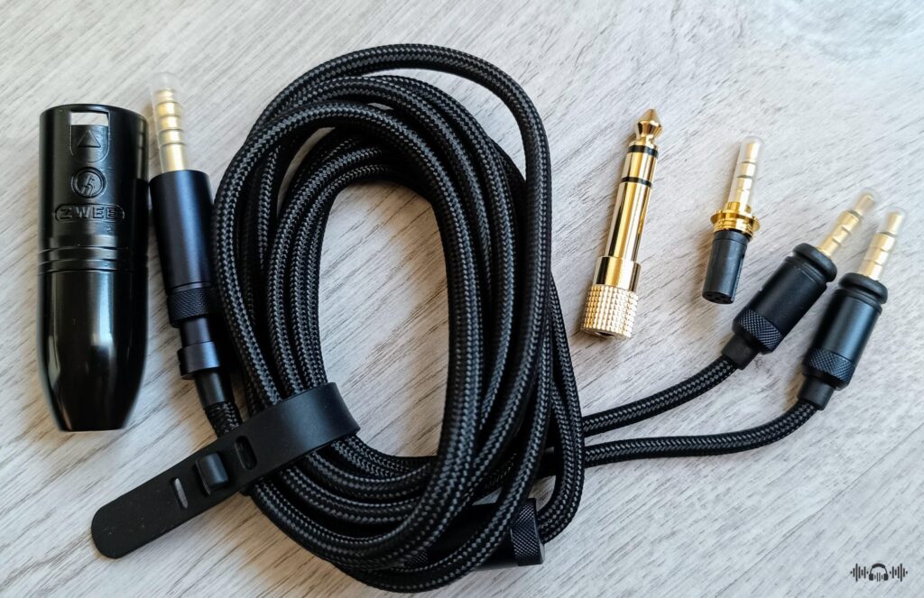 The FiiO FT5 is equipped with a detachable cable that boasts high quality. It features a dual 3.5mm interface on the headphone side and interchangeable plugs. The package includes 3.5mm and 4.4mm plugs, as well as 6.35mm and 4-pin XLR adapters. FiiO deserves praise for providing such a cable, which should be the standard for all headphone manufacturers.