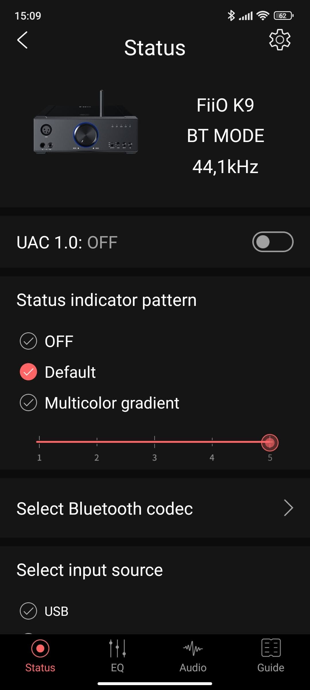 The FiiO K9 supports low energy Bluetooth mode that is constantly active and allows connectivity with the FiiO Control application even when Bluetooth reception mode is off. With the FiiO Control application you can adjust various parameters like low pass filters, status indicators, channel balance and enable the PEQ which is only effective in Bluetooth reception mode.