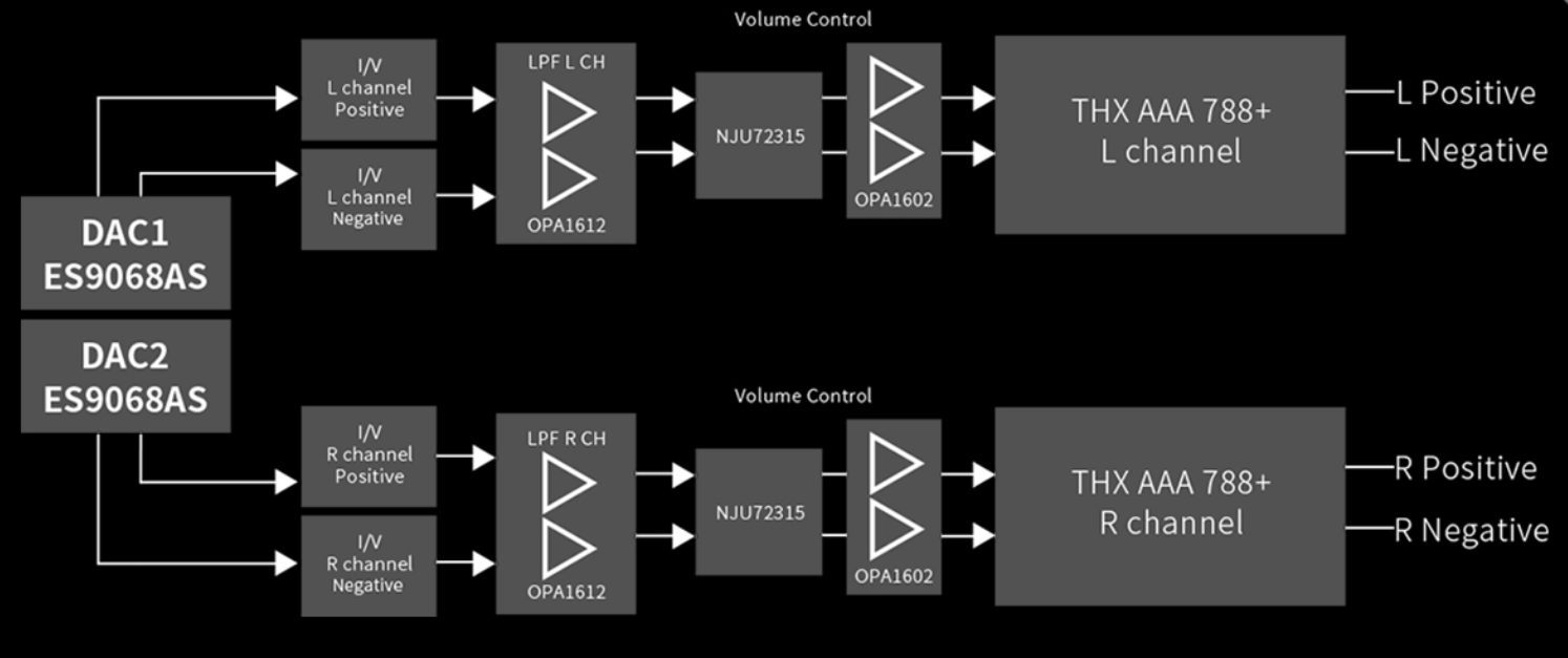 The DAC and the THX amplifier stages are a combination that produces deep and well controlled bass, which may not be that full bodied and visceral but it shines with excellent control and definition. The low-end is fast and powerful with extended dynamic swings and thundering impact. An overall performance that is not that far from the K9 PRO ESS which nonetheless manages to produce weightier and not as dry bass with better control and greater dynamics.