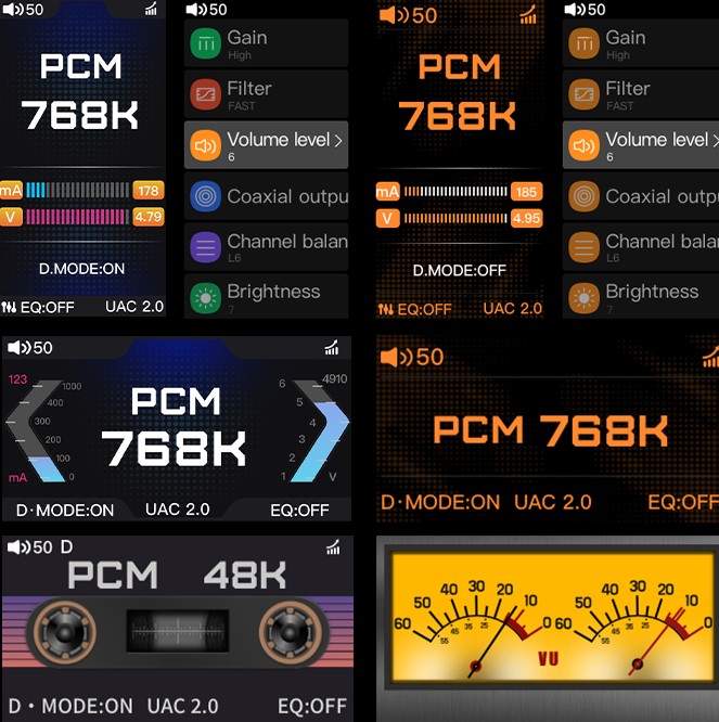 The colorful and vibrant display is outfitted with third-gen Corning gorilla glass for extra durability and scratch resistance. It can be oriented vertically or horizontally and the user can select between six different UI themes – retro tape cassette player and VU meters included. Most themes also display real time power consumption and input voltage readings.