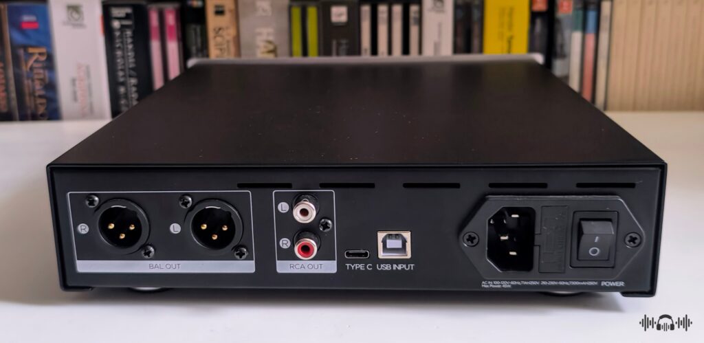 The device has a single USB digital input (with type-C and type-B plugs), balanced XLR and single ended RCA line outputs plus four headphone outputs (4-pin XLR, 4.4mm, 6.35mm and 3.5mm). You can also select high or low gain and NOS or OS filters.