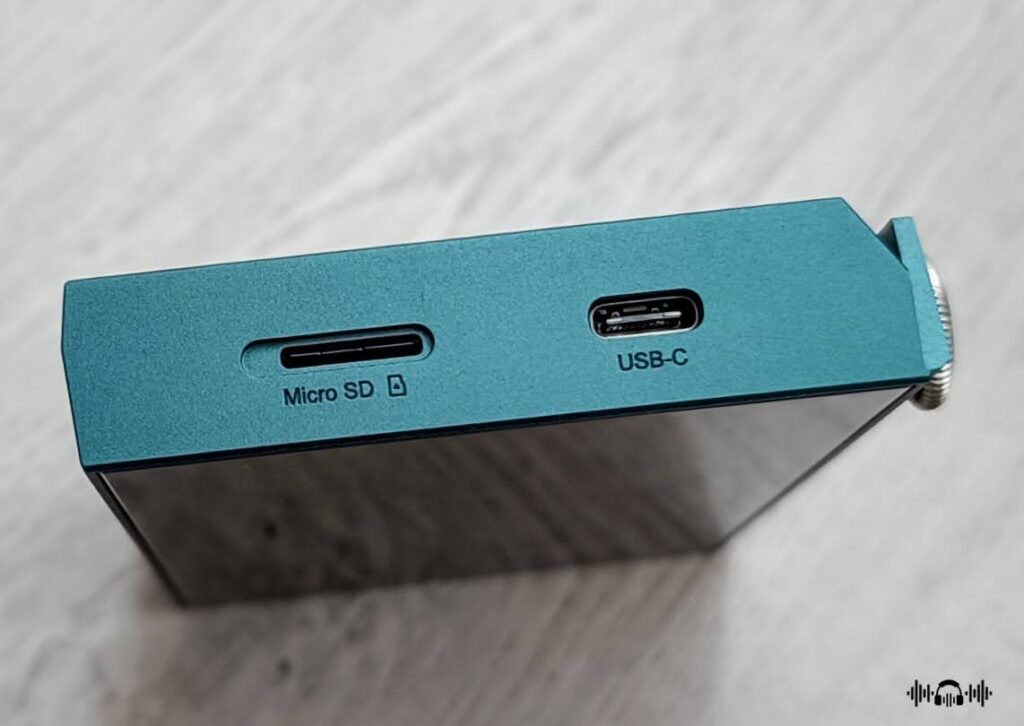 The design follows the standard iBasso configuration, featuring two headphone outputs positioned at the bottom of the unit, while the USB Type-C port and micro SD card slot are situated at the top. The 3.5mm output also serves as the SPDIF jack. On the right side, you will find the multifunction volume wheel along with three playback control buttons. This straightforward and minimalist layout is both practical and user-friendly.