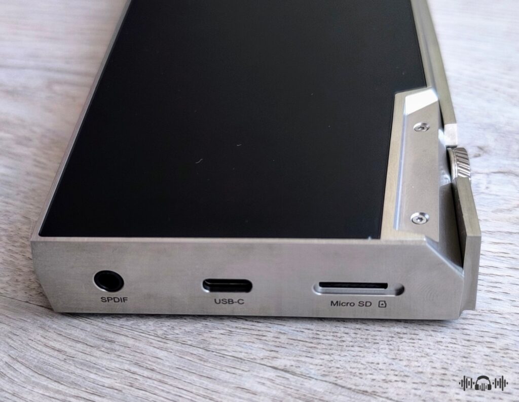 Next to the USB type-C port that is located at the upper part of the device you will also find a 3.5mm dedicated SPDIF output and the micro SD card slot. At the bottom of the chassis you can see the analog audio outputs and the 12V DC input of the AMP15 or any other amp card you have installed.