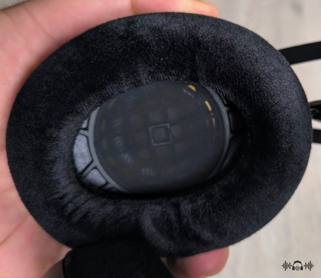 The detachable ear pads are covered with soft velour material and are large enough to engulf the whole ear. The inner foam is of medium density that feels smooth to the face. The velour can get a little warm after a while but it doesn’t cause much sweat.