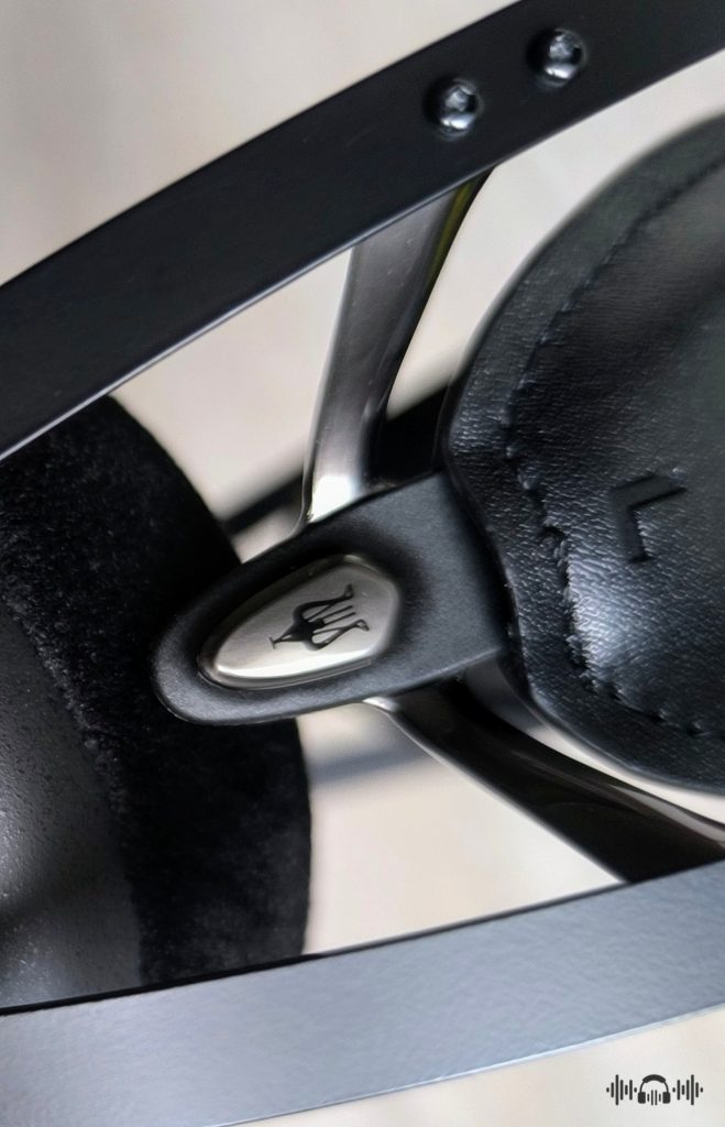 The spring-steel frame is assembled together with cast-zinc alloy parts in a silver colored PVD coating that adds a nice contrast to the total black finish of the headphone.