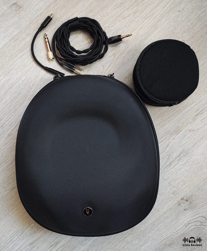The 105 Silva is generously accessorised. The bundle includes a hard EVA carrying case in black color, a 1.8m long OFC cable, a custom 3.5mm to USB type-C cable adapter with an integrated DAC/amp, a 6.35mm hard adapter and a pouch to store the cables. A cable with a balanced 4.4mm plug is not included but you can order one from the Meze Audio online shop.
