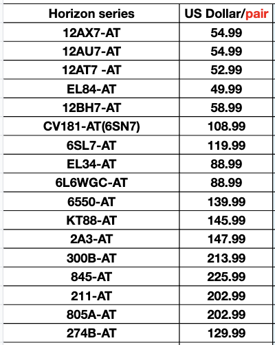 The Psvane Horizon tubes were kindly provided free of charge in exchange for an honest review. I didn’t receive monetary or any other kind of compensation and I don’t use affiliate links. The prices for matched pairs are KT88 $145.99, EL84 $49.99, 12AU7 $54.99 and you can buy them from Amazon. Psvane Horizon KT88, EL84, 12AU7.